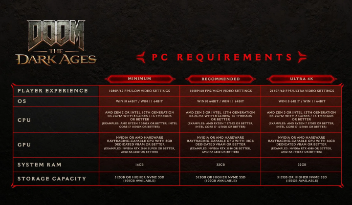 Given the stellar optimisation of previous titles like Doom (2016) and Doom Eternal, it will be intriguing to see how the minimum specifications perform with the new game.